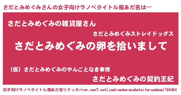 さだとみめぐみさんの女子向けラノベタイトル風あだ名