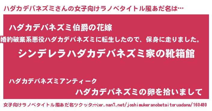 | 男性向けラノベタイトル風あだ名 | 『緋弾のハダカデバネズミ』 |
