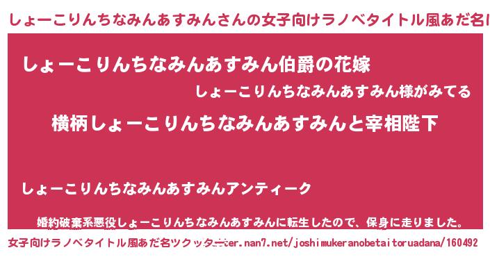 | 男性向けラノベタイトル風あだ名 | 『しょーこりんちなみんあすみんに滅ぼされるだけの簡単なお仕事です』 |