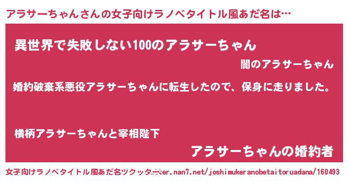 | ヒーロー風カッコイイあだ名 | 『ネオアラサーチャン』『銀牙騎士アラ』 |