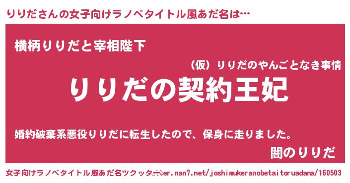 | 男性向けラノベタイトル風あだ名 | 『りりだという概念が存在しない退屈な世界 』 |