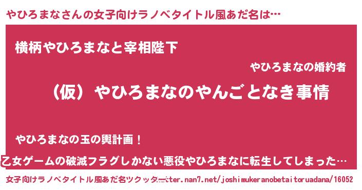 | 胡散臭い通販商品みたいなあだ名 | 『必ず成功する霊験あらたかなお札…その名も「やひろまな」』 |