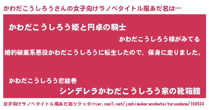 | 胡散臭い通販商品みたいなあだ名 | 『必ず成功する霊験あらたかなお札…その名も「かわだこうしろう」』 |