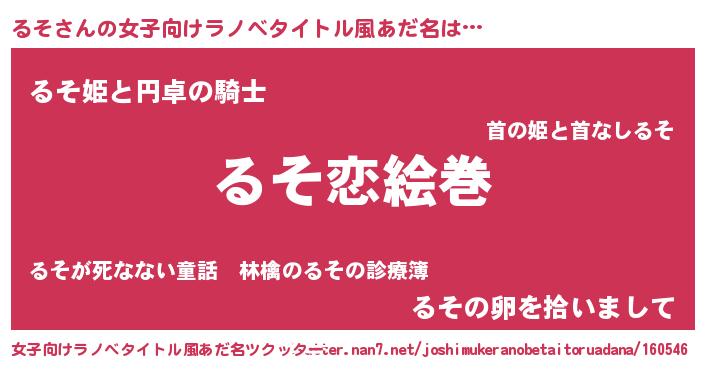 | 男性向けラノベタイトル風あだ名 | 『おまえをオタクにしてやるから、俺をるそにしてくれ! 』 |