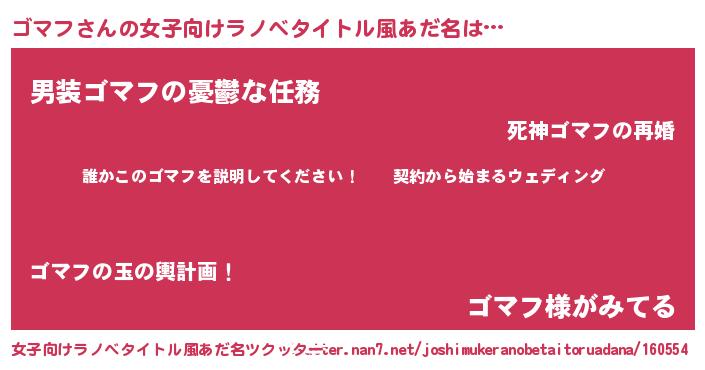 | 男性向けラノベタイトル風あだ名 | 『ゴマフアートオンライン』 |