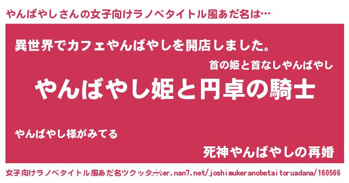 | 男性向けラノベタイトル風あだ名 | 『ヤンバヤシアートオンライン』 |