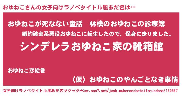 | 意味不明あだ名 | 『住所不定無職おゆねこ(84歳)』 |