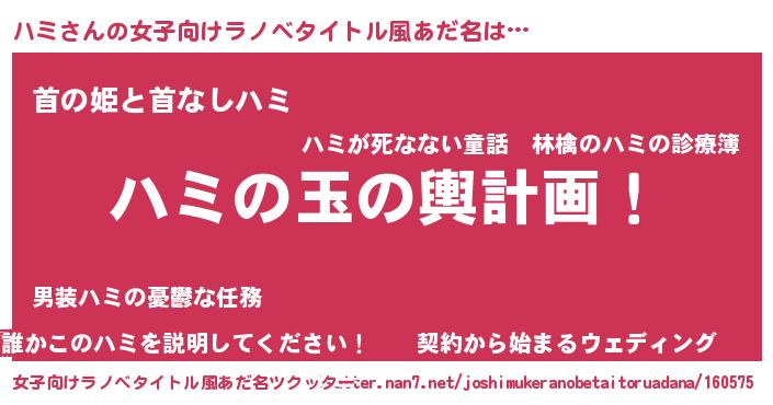 | 胡散臭い通販商品みたいなあだ名 | 『億万長者になれるブレスレット…その名も「ハミ」』 |