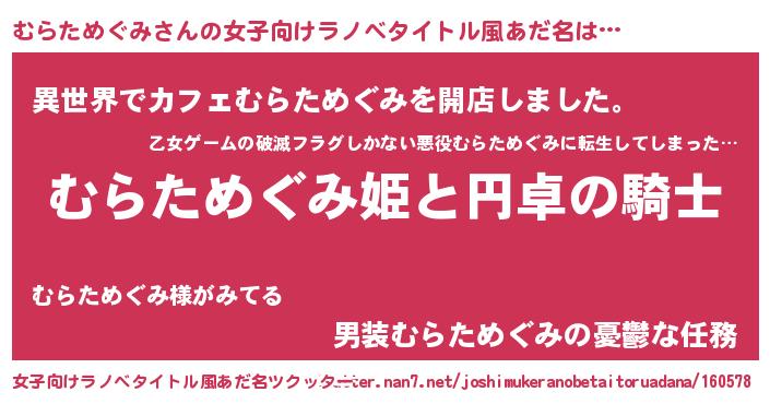| 胡散臭い通販商品みたいなあだ名 | 『モテモテ間違いなし霊験あらたかなお札…その名も「むらためぐみ」』 |