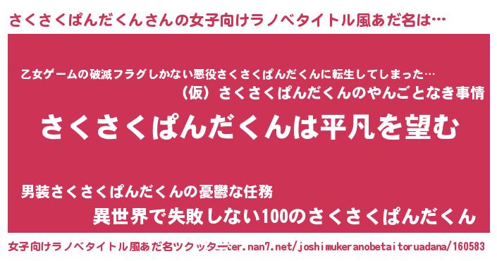 | 胡散臭い通販商品みたいなあだ名 | 『信頼と実績のペンダント…その名も「さくさくぱんだくん」』 |