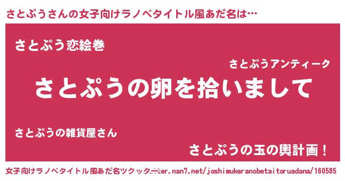 | 男性向けラノベタイトル風あだ名 | 『ダンジョンにさとぷうを求めるのは間違っているだろうか』 |
