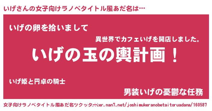 | 男性向けラノベタイトル風あだ名 | 『転生したらいげだった件』『いげの憂鬱』 |