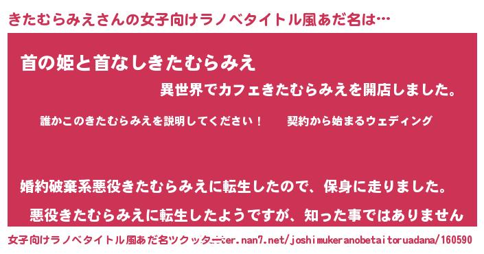 | ヘコむあだ名 | 『きたっふぃ~』『きたむらみえ(苦笑)』 |