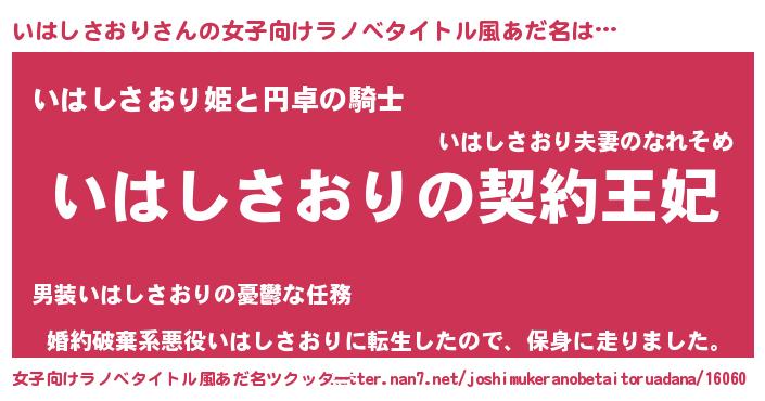 | 胡散臭い通販商品みたいなあだ名 | 『来世でも幸せになれる健康食品…その名も「いはしさおり」』 |