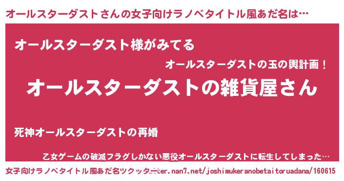 | 男性向けラノベタイトル風あだ名 | 『やはりオールスターダストの青春ラブコメはまちがっている 』 |