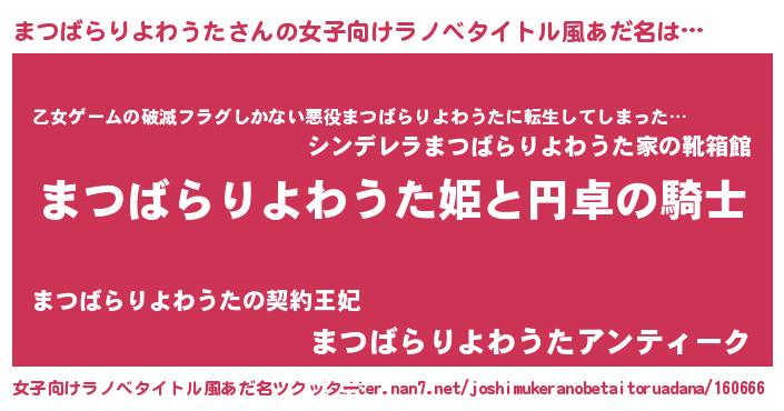 | 胡散臭い通販商品みたいなあだ名 | 『モテモテ間違いなしブレスレット…その名も「まつばらりよわうた」』 |