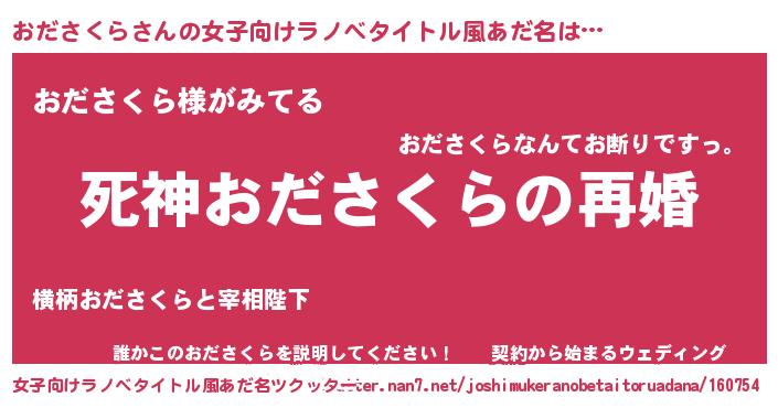 | 男性向けラノベタイトル風あだ名 | 『ノーゲーム・ノーオダサクラ』 |