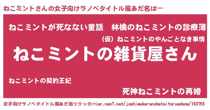 | 欧米人風あだ名 | 『ねこミントクリステル』 |