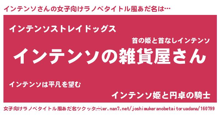 | 男性向けラノベタイトル風あだ名 | 『やはりインテンソの青春ラブコメはまちがっている 』 |