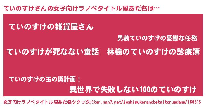 | 男性向けラノベタイトル風あだ名 | 『魔弾の王とていのすけ』 |