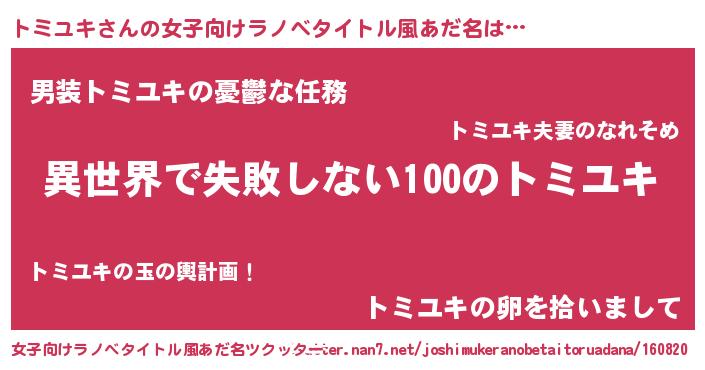 | 意味不明あだ名 | 『永久保存トミユキ』 |