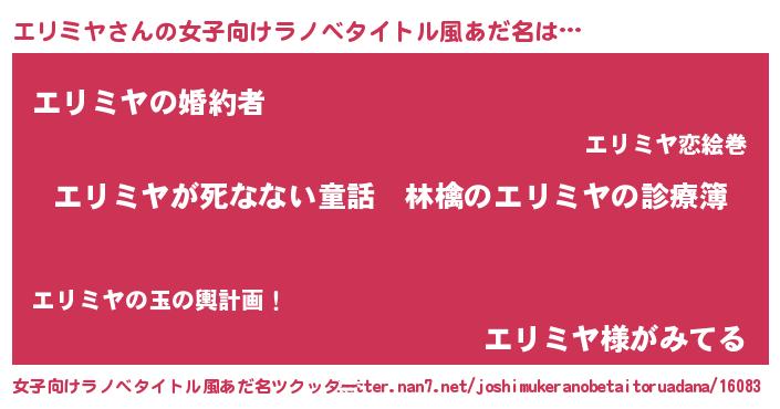 | 意味不明あだ名 | 『住所不定無職エリミヤ(47歳)』 |