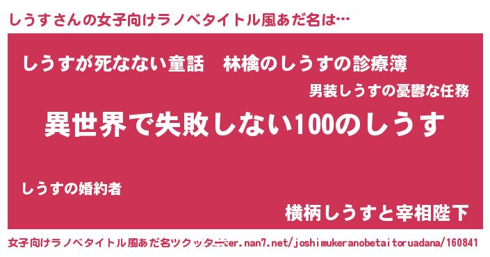| 男性向けラノベタイトル風あだ名 | 『しうすという概念が存在しない退屈な世界 』 |