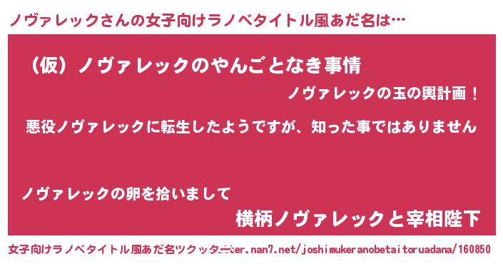 | 男性向けラノベタイトル風あだ名 | 『この素晴らしい世界にノヴァレックを!』 |