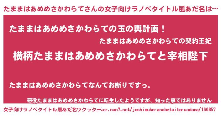 | 男性向けラノベタイトル風あだ名 | 『たままはあめめさかわらてに滅ぼされるだけの簡単なお仕事です』 |