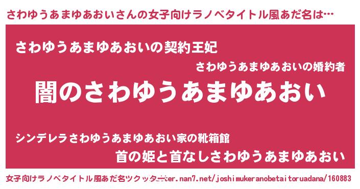 | 男性向けラノベタイトル風あだ名 | 『Re:さわゆうあまゆあおいから始める異世界生活』 |