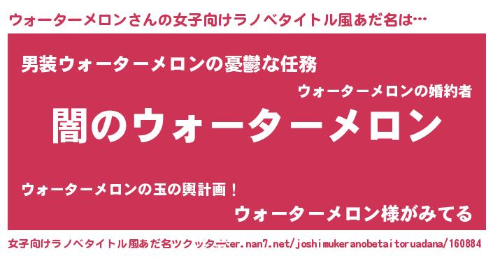 | 男性向けラノベタイトル風あだ名 | 『Re:ウォーターメロンから始める異世界生活』 |