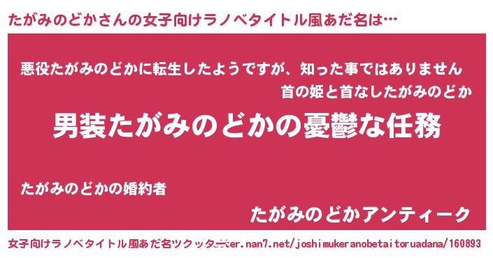 | 男性向けラノベタイトル風あだ名 | 『うちのたがみのどかが世界を掌握している!』 |