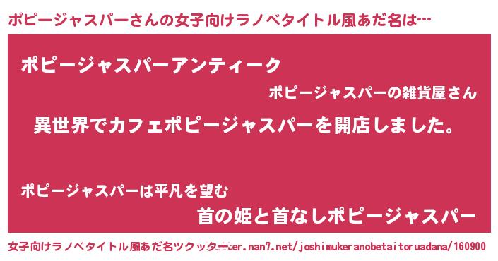 | 男性向けラノベタイトル風あだ名 | 『誰もが恐れるあのポピージャスパーが、ぼくの専属メイドになるようです。』 |