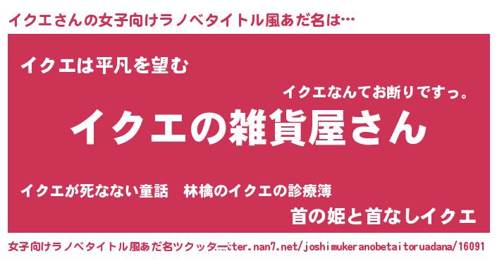 | 男性向けラノベタイトル風あだ名 | 『やはりイクエの青春ラブコメはまちがっている 』 |