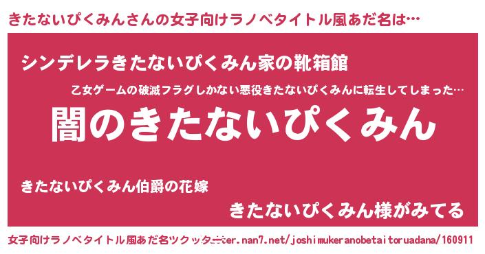 | 男性向けラノベタイトル風あだ名 | 『Re:きたないぴくみんから始める異世界生活』 |