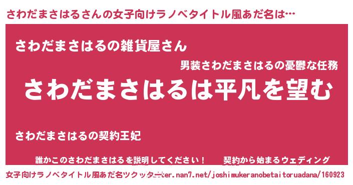 | 男性向けラノベタイトル風あだ名 | 『ダンジョンにさわだまさはるを求めるのは間違っているだろうか』 |