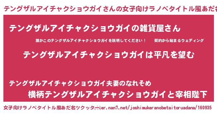 | 胡散臭い通販商品みたいなあだ名 | 『信頼と実績のペンダント…その名も「テングザルアイチャクショウガイ」』 |