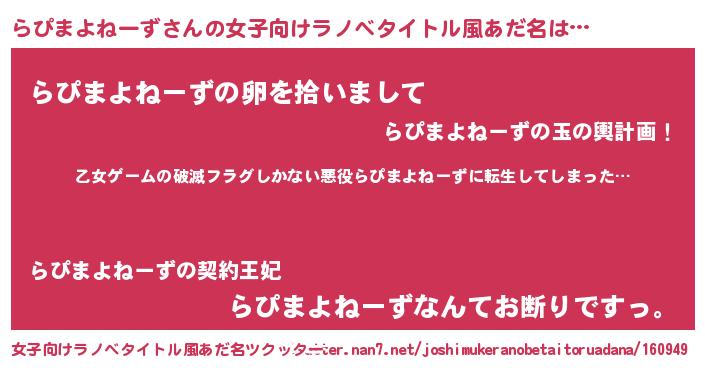| ヘコむあだ名 | 『らぴお』『らぴまよねーず(苦笑)』 |
