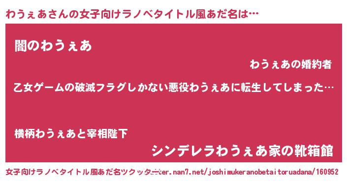 | 意味不明あだ名 | 『住所不定無職わうぇあ(14歳)』 |