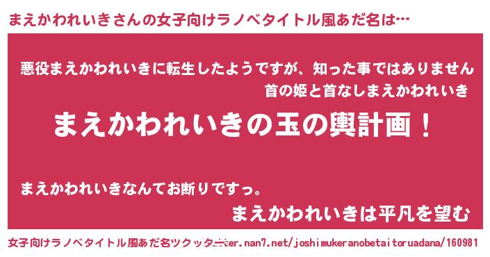 | 胡散臭い通販商品みたいなあだ名 | 『あなたにだけ特別に提供する100年もののヴィンテージワイン…その名も「まえかわれいき」』 |