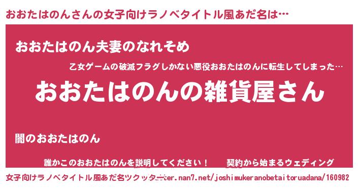 | 男性向けラノベタイトル風あだ名 | 『やはりおおたはのんの青春ラブコメはまちがっている 』 |