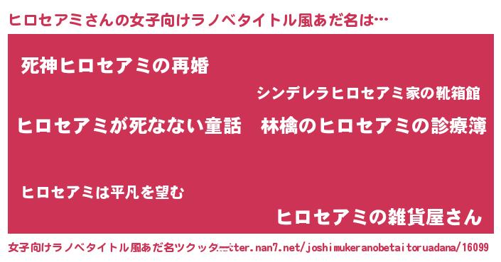 | 男性向けラノベタイトル風あだ名 | 『魔弾の王とヒロセアミ』 |