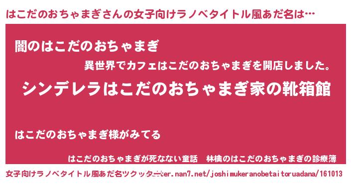 | 胡散臭い通販商品みたいなあだ名 | 『ガンによく効く高麗人参…その名も「はこだのおちゃまぎ」』 |