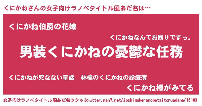| 男性向けラノベタイトル風あだ名 | 『うちのくにかねが世界を掌握している!』 |