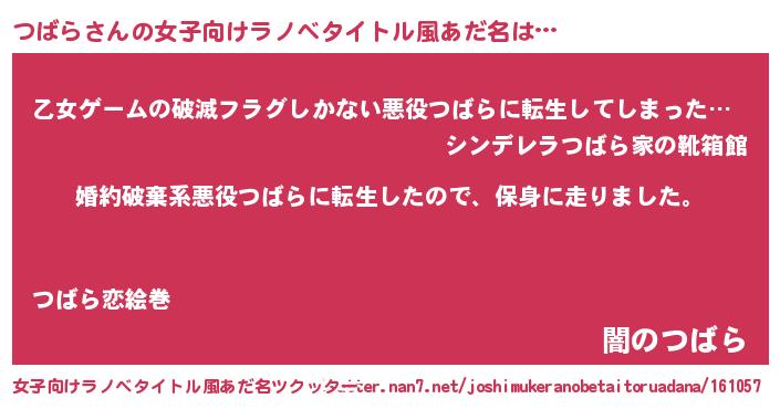 | 男性向けラノベタイトル風あだ名 | 『ツバラスレイヤー』『緋弾のツバラ』 |