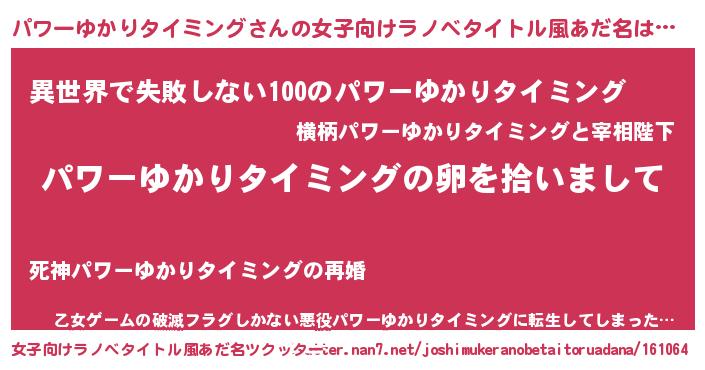| 胡散臭い通販商品みたいなあだ名 | 『伝統あるサプリメント…その名も「パワーゆかりタイミング」』 |