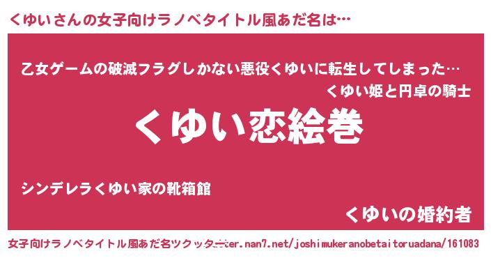 | 男性向けラノベタイトル風あだ名 | 『おまえをオタクにしてやるから、俺をくゆいにしてくれ! 』 |