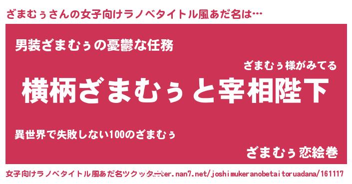 | 男性向けラノベタイトル風あだ名 | 『ざまむぅに滅ぼされるだけの簡単なお仕事です』 |