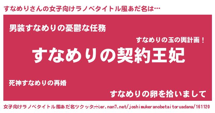 | 胡散臭い通販商品みたいなあだ名 | 『来世でも幸せになれる水素水…その名も「すなめり」』 |