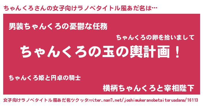 | 男性向けラノベタイトル風あだ名 | 『転生したらちゃんくろだった件』 |